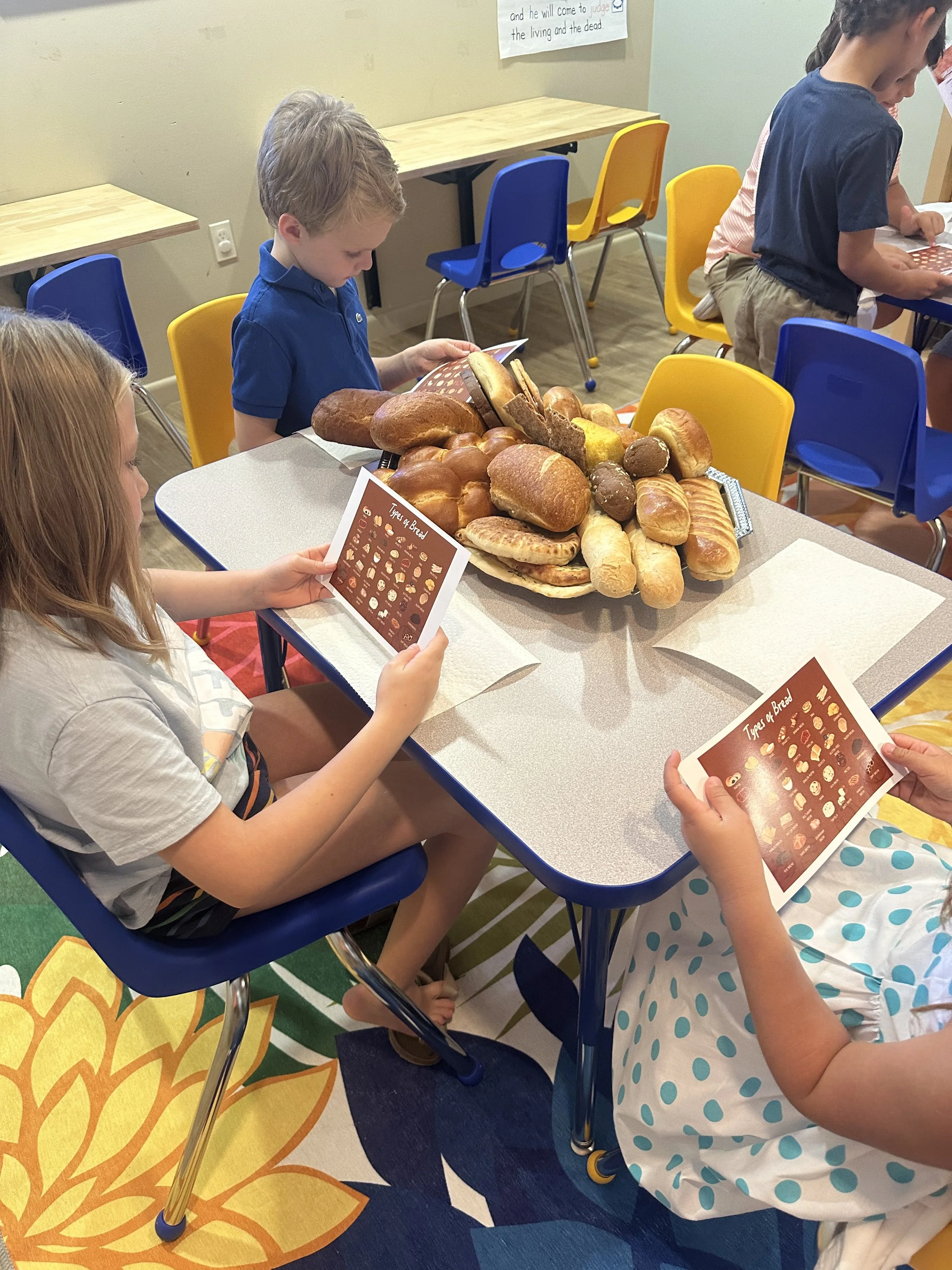 The children then looked at themselves and one another. “How do I look different from my friend? What makes me unique?” These questions led to a beautiful moment of sharing, respect, and wonder. They saw that just as each bread is special and essential to the table, so is every person - each one loved and valued by God.