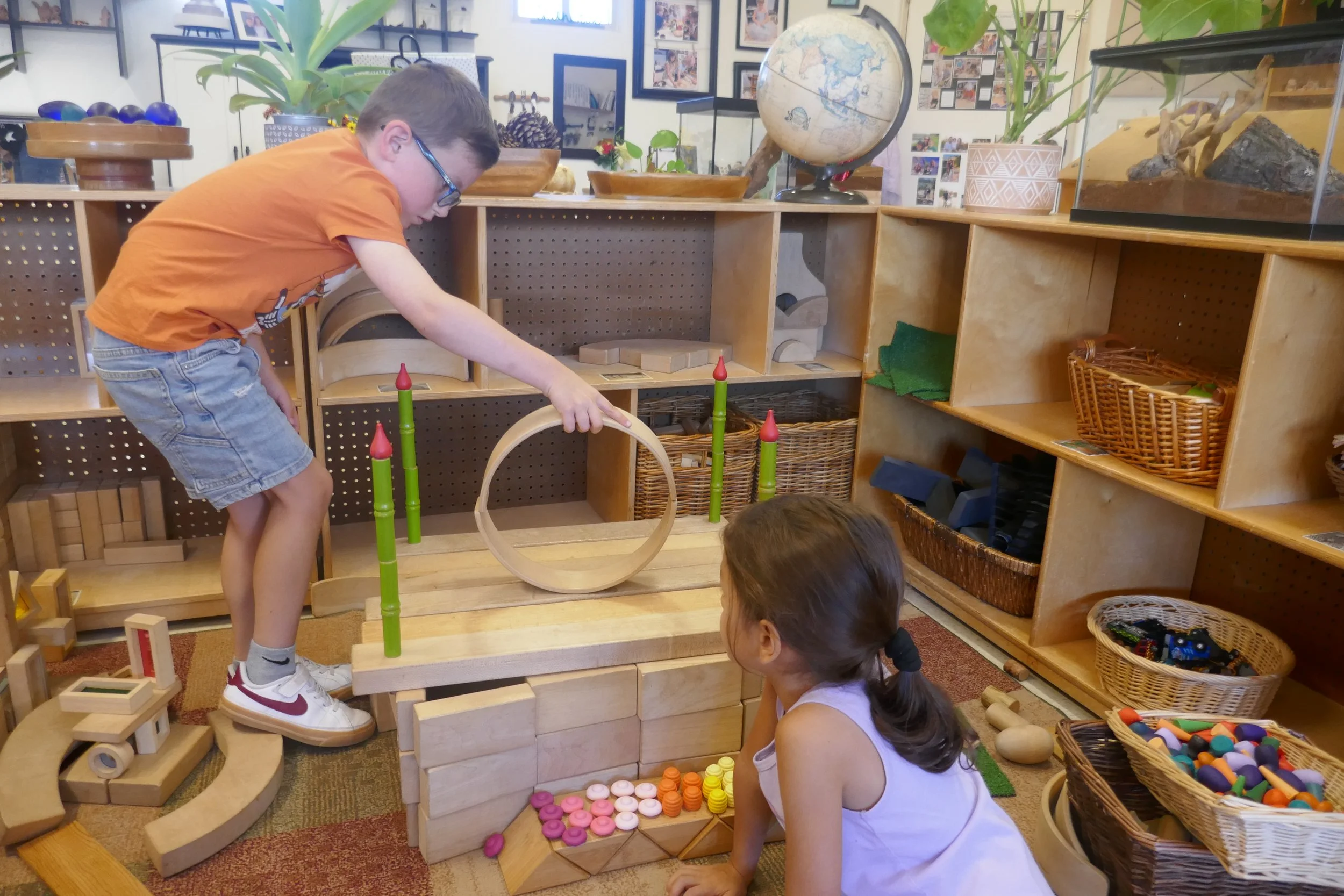 Brains develop from the bottom to the top, meaning the limbic system comes online before the prefrontal cortex. Supporting this development facilitates emotional regulation, social connection, learning, and memory. The limbic system fosters dispositions in early childhood, which shape a child’s approach to learning, influencing attitudes such as attention span, confidence, empathy, collaboration, persistence, curiosity, problem-solving, resilience, and creativity. These essential dispositions are forged in play! This looks like children who are intrinsically motivated to work through challenges, given time to build elaborate play ideas, and opportunities to revisit or repeat work they find interesting.