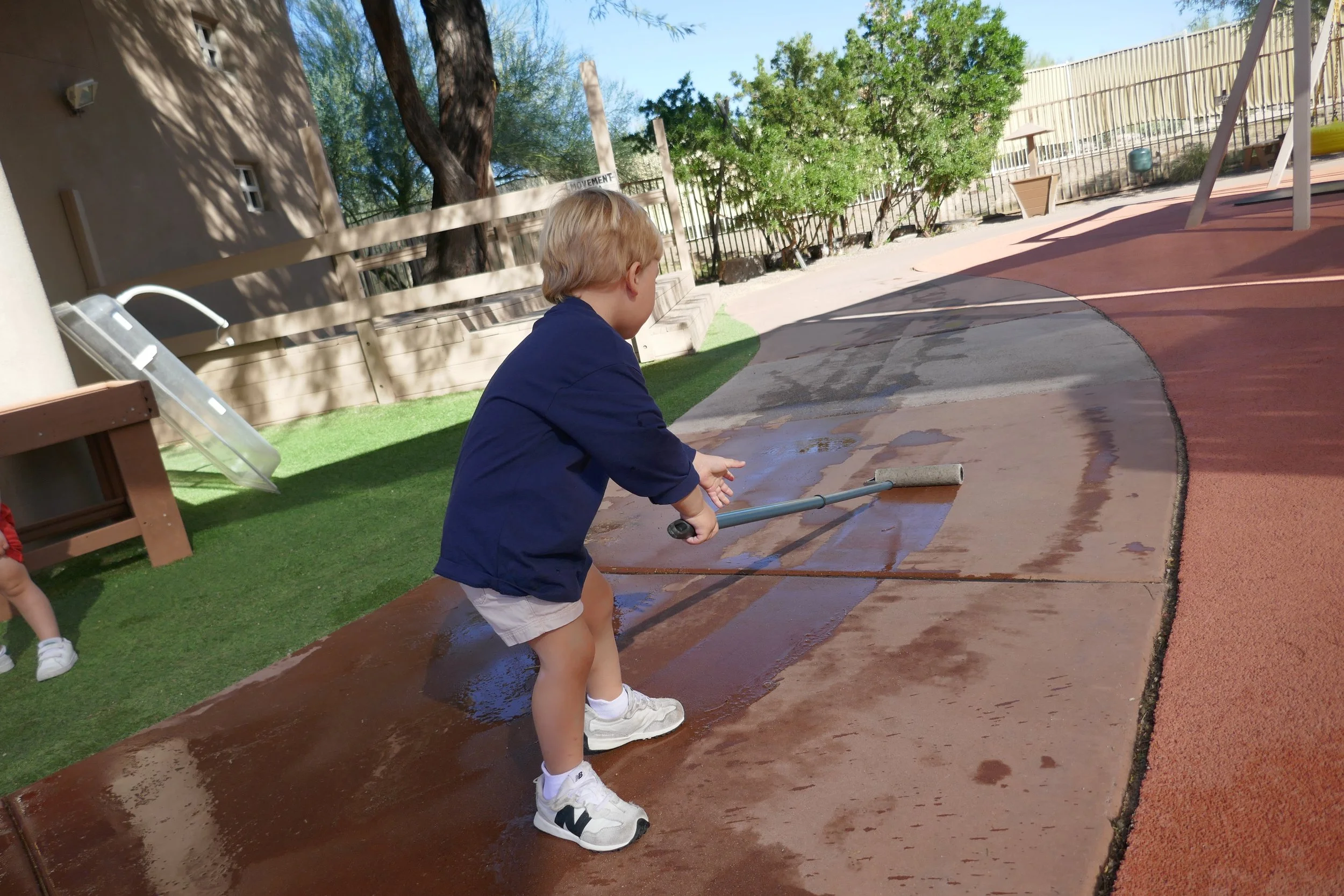 Bodies develop from the core outward. Movement is essential! Trunk strength, stability, and control develop before fine motor skills in the hands and feet. A strong core supports good posture, coordination, and focus. It also prepares children for smaller muscle skills, such as handwriting and cutting with scissors. Children need to run, jump, balance, swing, stretch, and crawl - not just for twenty minutes at recess as a break, but as a part of the curriculum. These muscles are developed as children paint with water and long rollers, build with oversized hollow blocks, and dance around with butterfly wings on their backs.